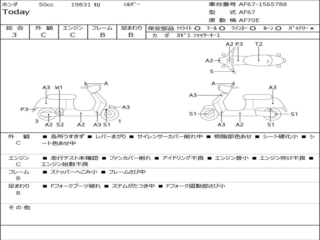 | Номер рамы / VIN | AF67-1565788 |