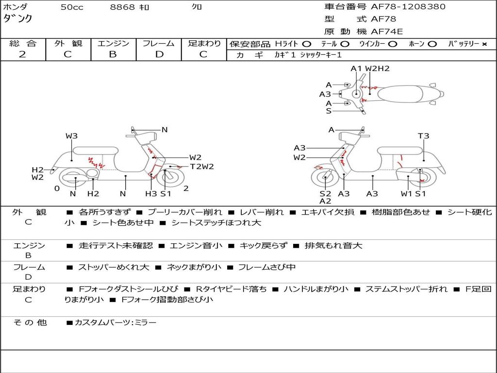 | Номер рамы / VIN | AF78-1208380 |