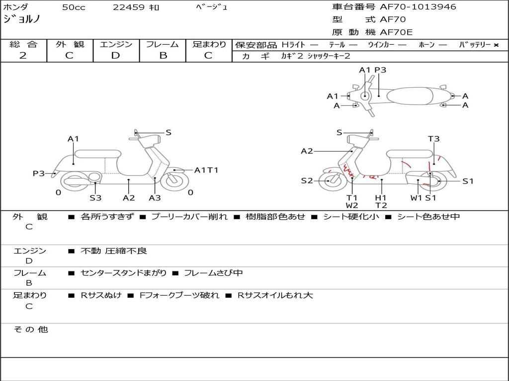 | Номер рамы / VIN | AF70-1013946 |