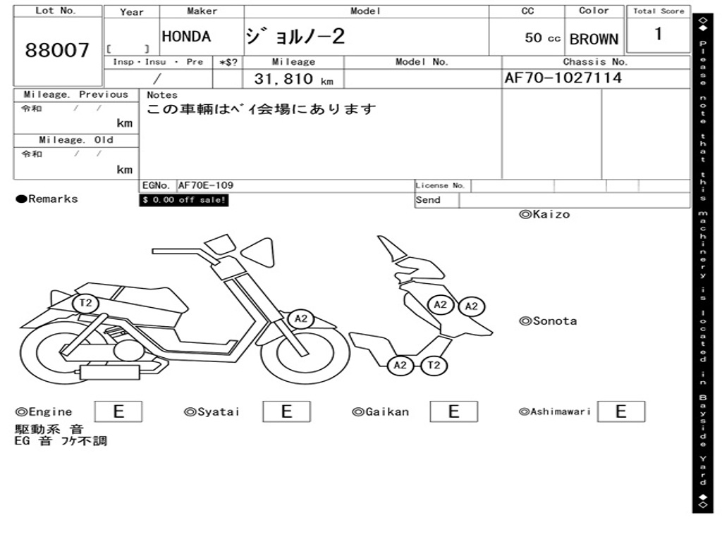 | Аукцион | ARAI BAYSIDE |
