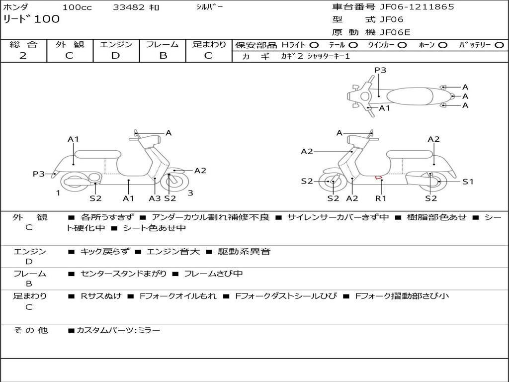 | Номер рамы / VIN | JF06-1211865 |