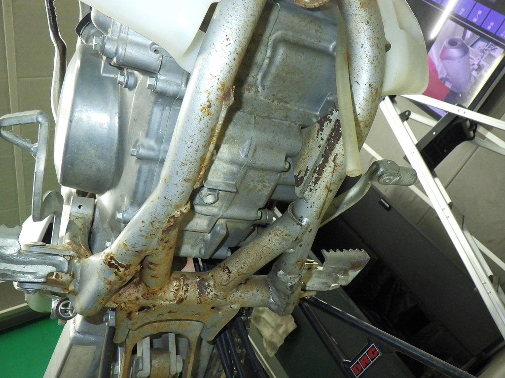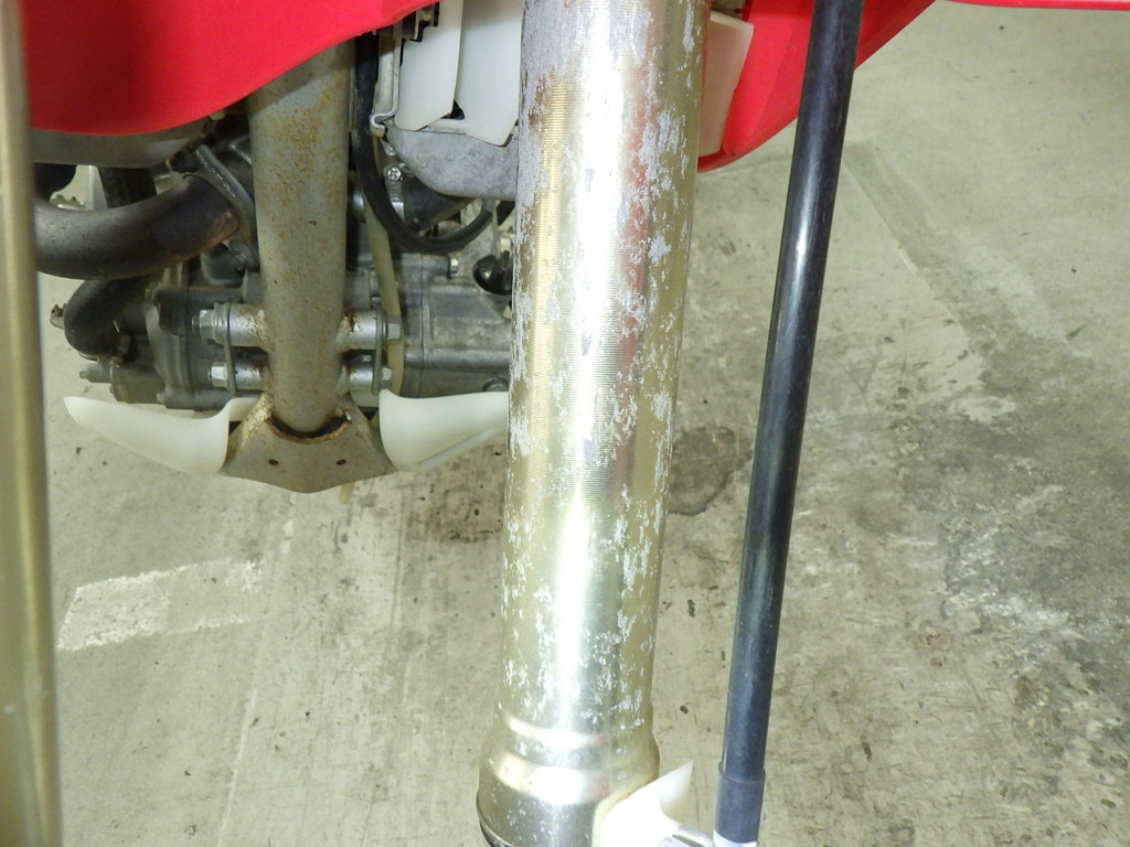 | внешняя часть вилки | следы коррозии <много>, потек масла <много>, трещины <много> |