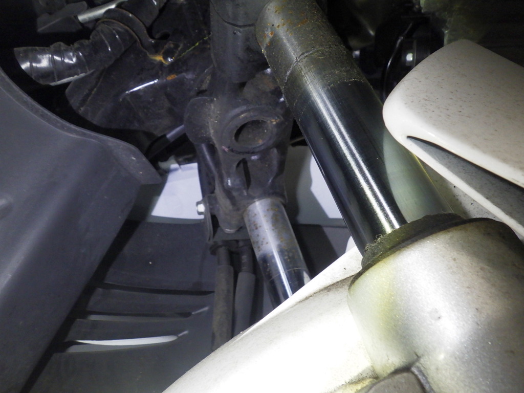 | внешняя часть вилки | потек масла |