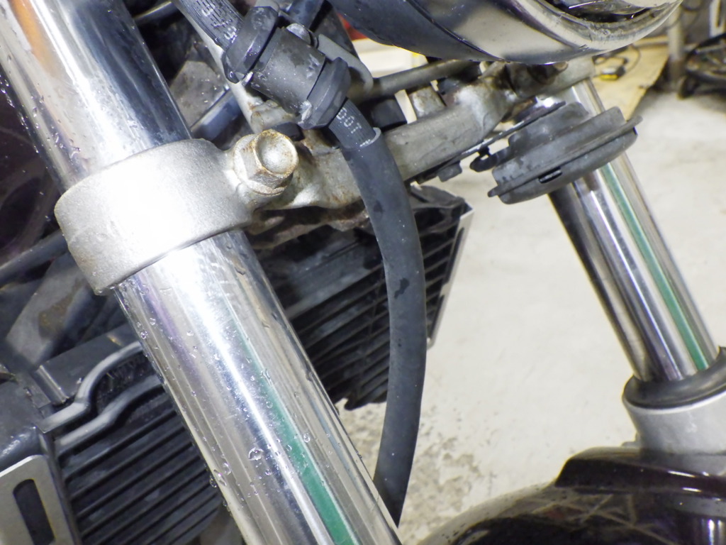 | внешняя часть вилки | потек масла <немного>, перекрашено, неравномерность цвета ЛКП |
