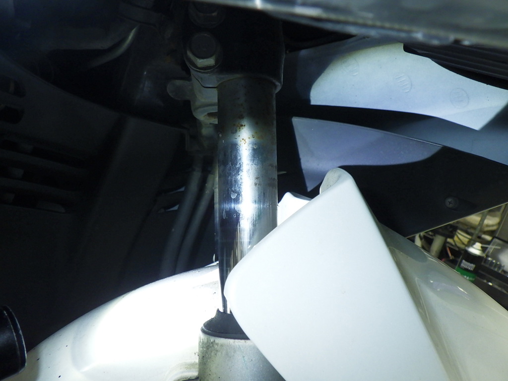 | внешняя часть вилки | потертость, потек масла |