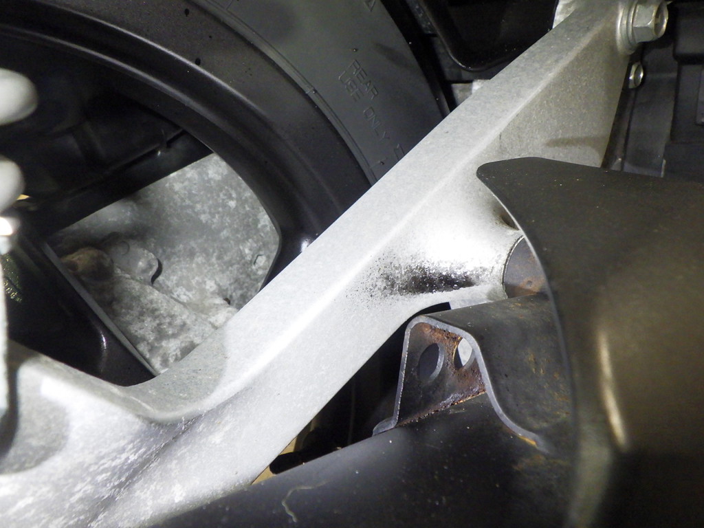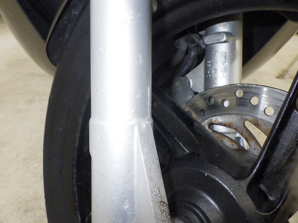 | внешняя часть вилки | следы коррозии <много>, paintswelled <средне>, потек масла <много> |