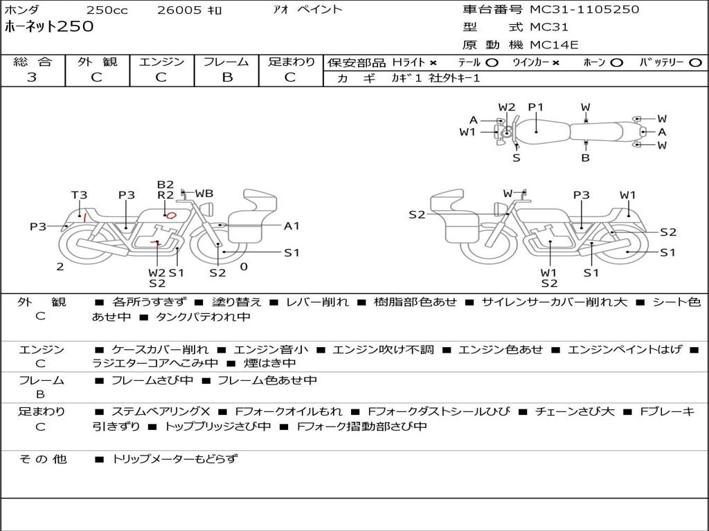 | Номер рамы / VIN | MC31-1105250 |