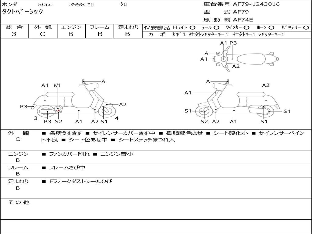| Номер рамы / VIN | AF79-1243016 |