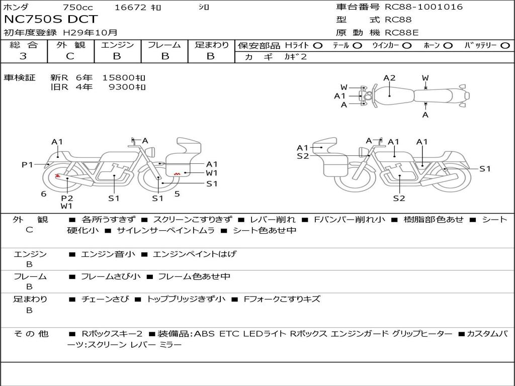 | Номер рамы / VIN | RC88-1001016 |