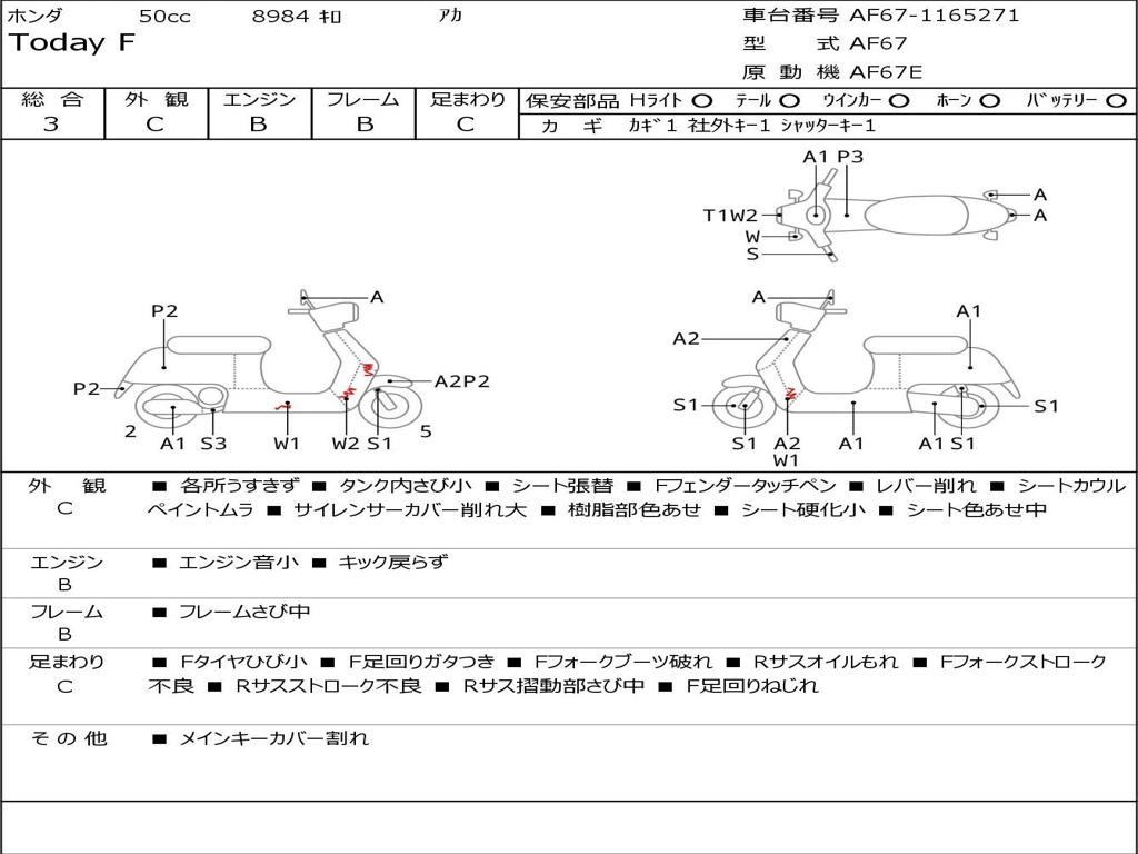 | Номер рамы / VIN | AF67-1165271 |