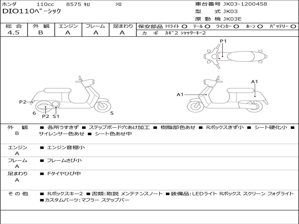 | Номер рамы / VIN | JK03-1200458 |
