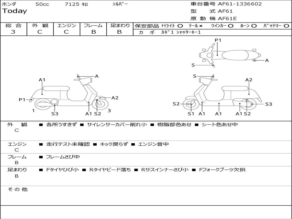 | Номер рамы / VIN | AF61-1336602 |