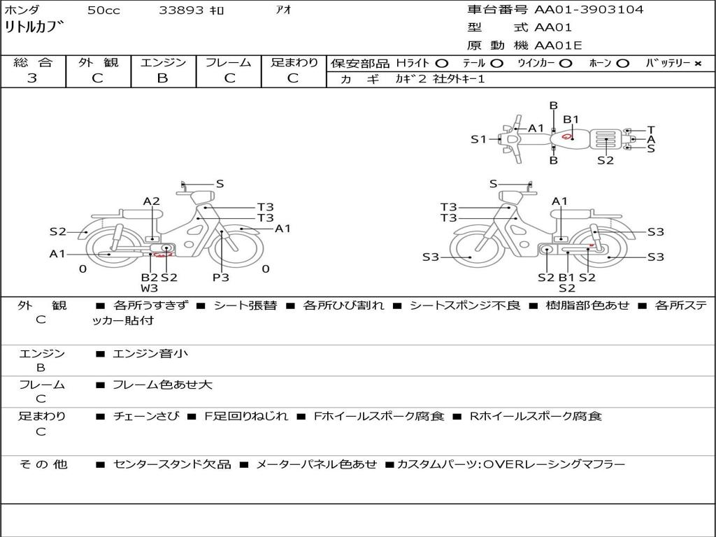 | Номер рамы / VIN | AA01-3903104 |