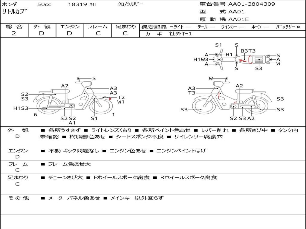 | Номер рамы / VIN | AA01-3804309 |