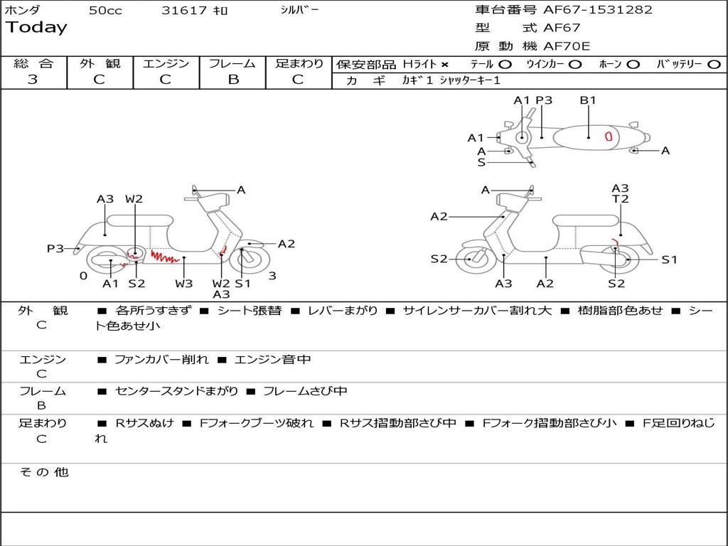 | Номер рамы / VIN | AF67-1531282 |
