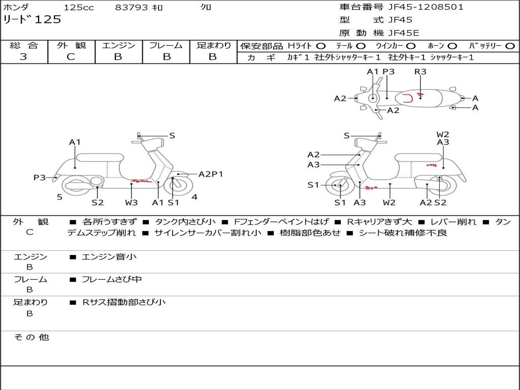 | Номер рамы / VIN | JF45-1208501 |