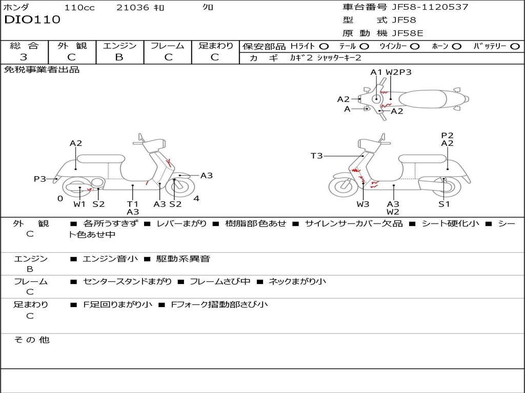 | Номер рамы / VIN | JF58-1120537 |
