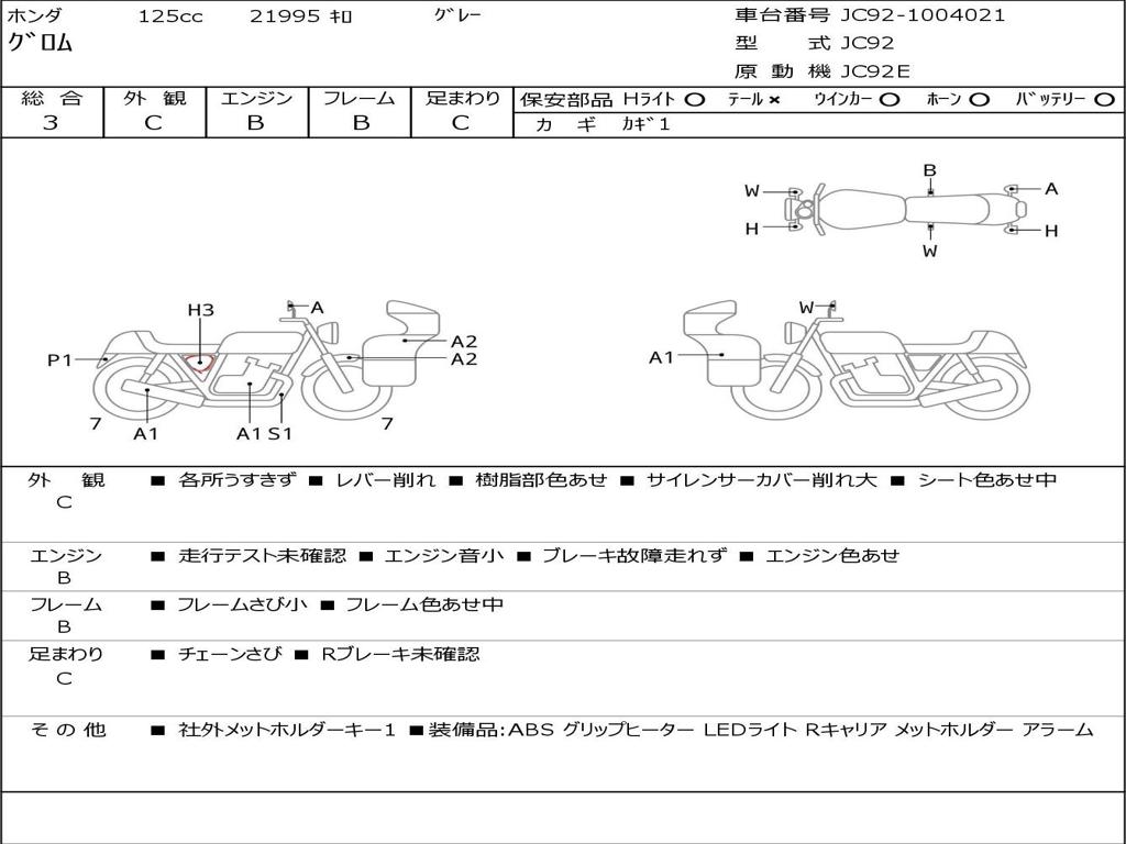 | Номер рамы / VIN | JC92-1004021 |