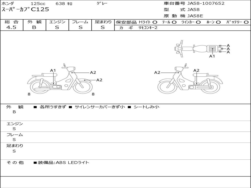 | Номер рамы / VIN | JA58-1007652 |
