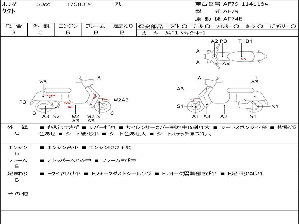 | Номер рамы / VIN | AF79-1141184 |