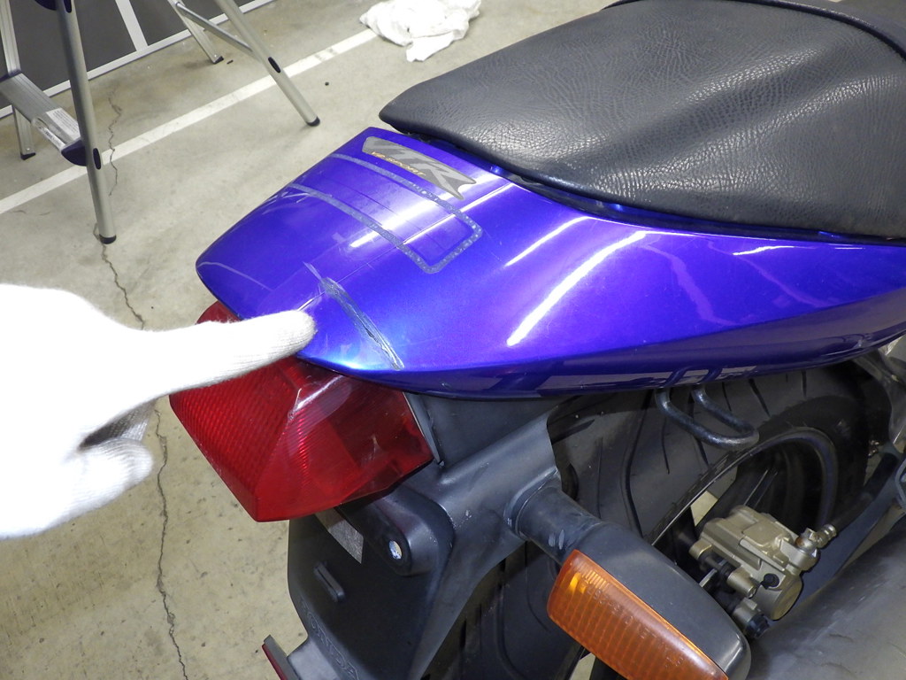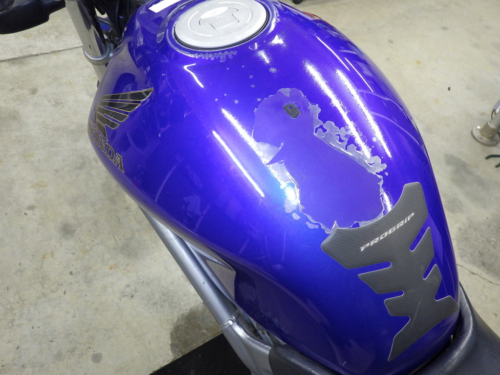 | бензобак | царапины <много>, вмятина <немного>, износ(потертость) краски <много> |