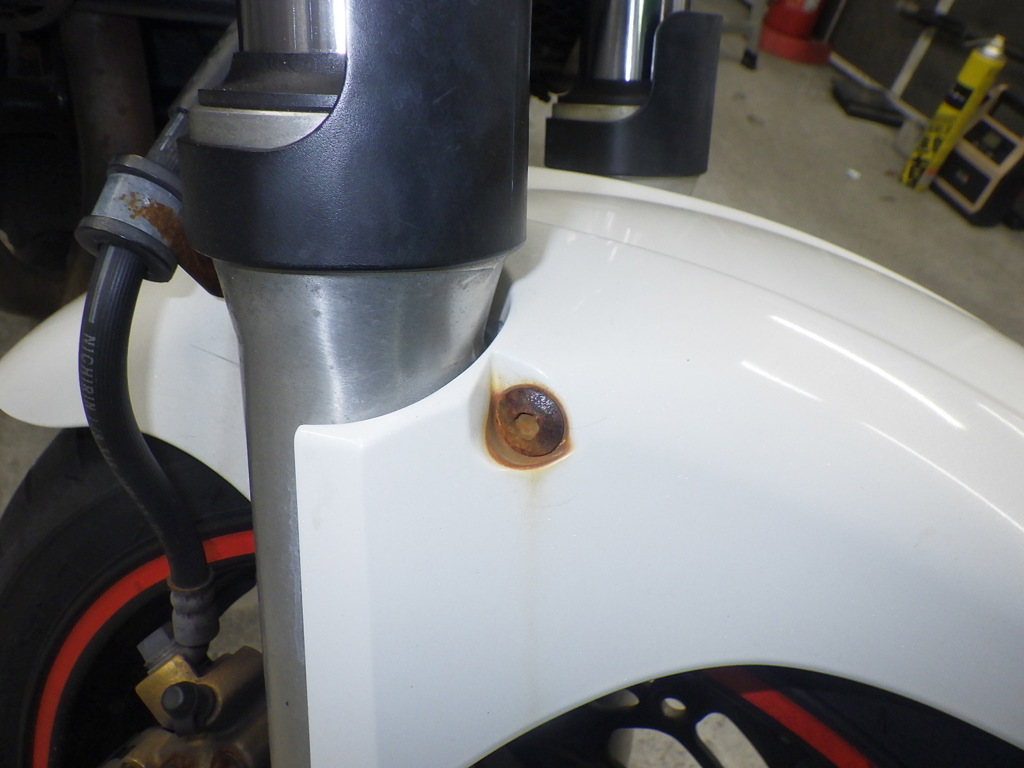 | внешняя часть вилки | следы коррозии <много>, полирован., потек масла <много> |