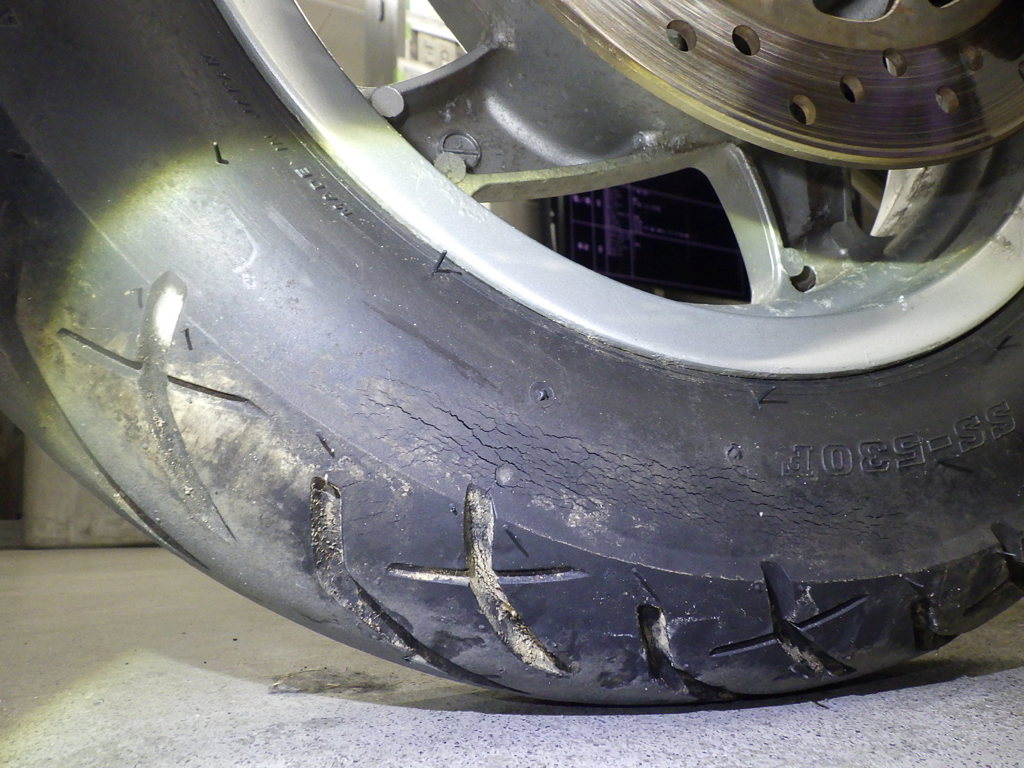 | шина | трещины, требует замены |