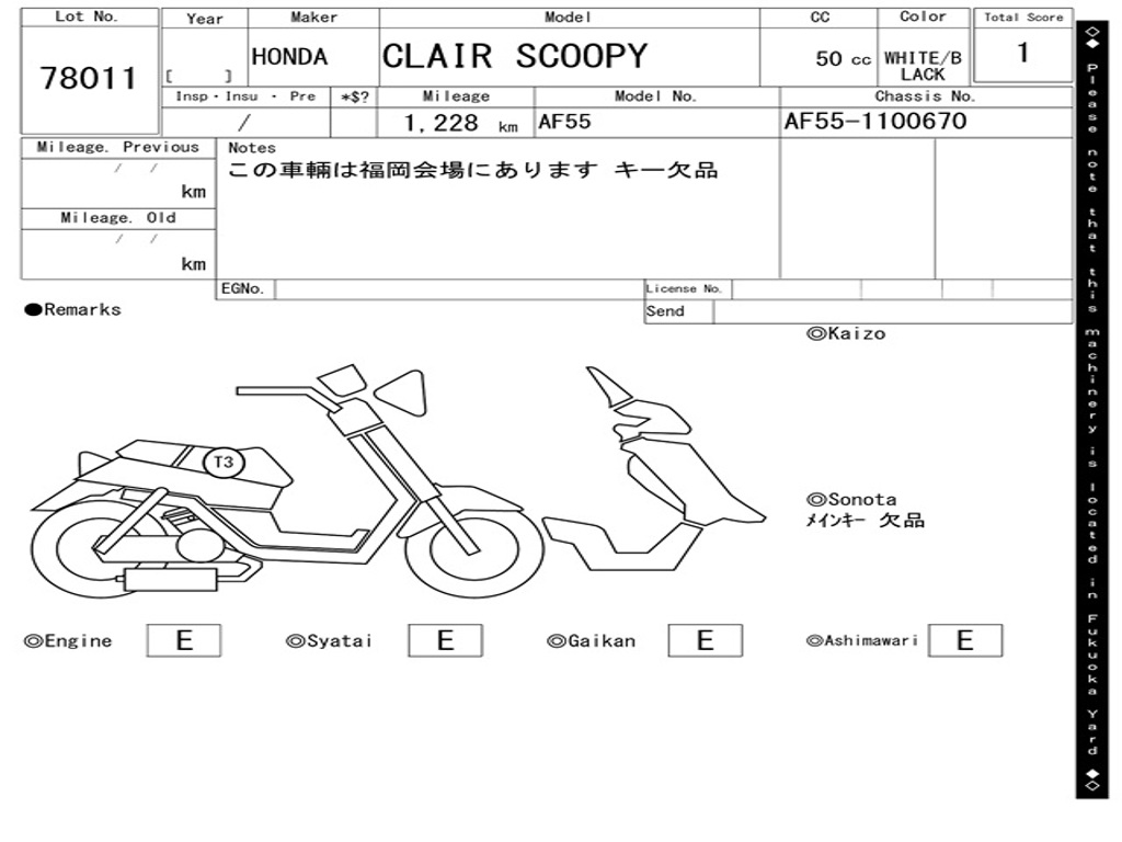 | Номер рамы / VIN | AF55-1100670 |