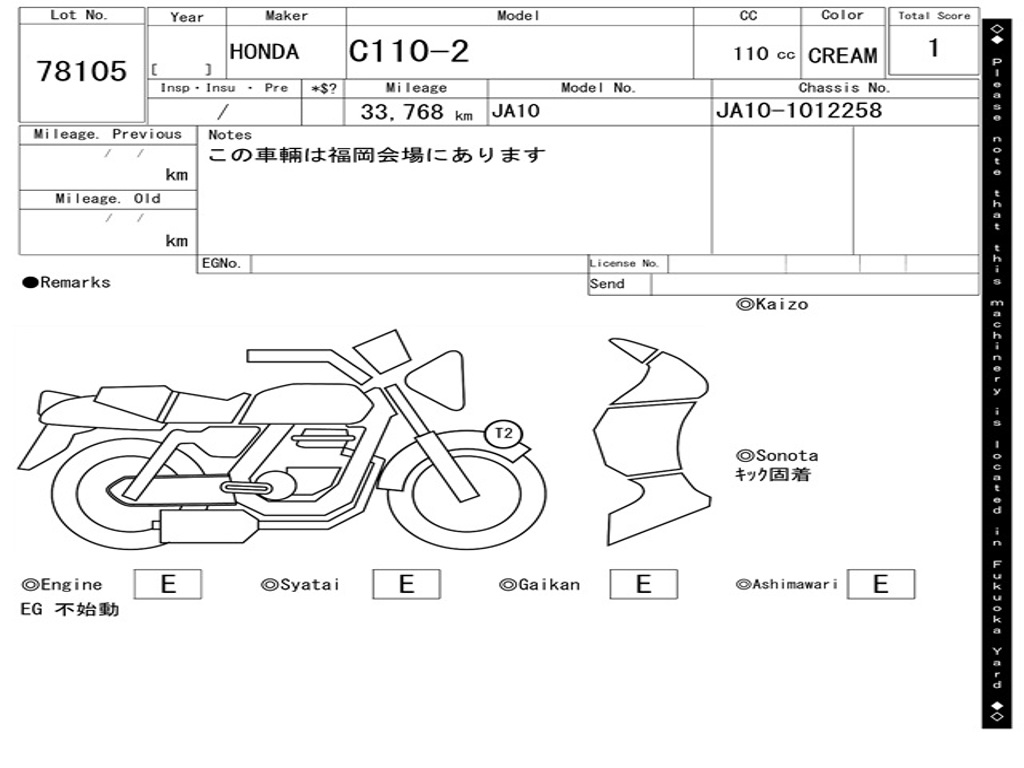 | Номер рамы / VIN | JA10-1012258 |