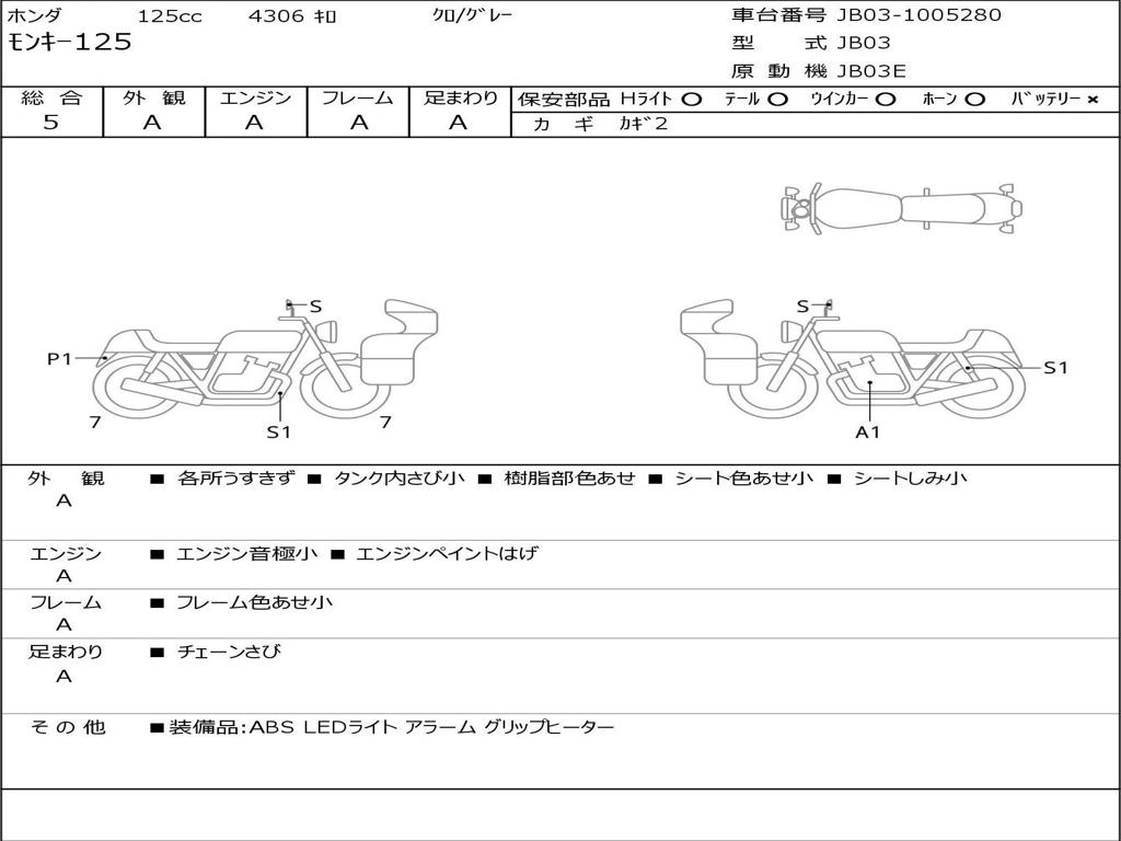 | Номер рамы / VIN | JB03-1005280 |