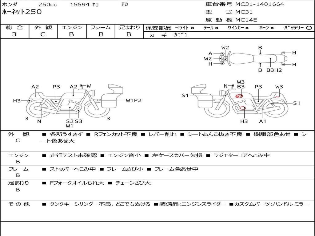 | Номер рамы / VIN | MC31-1401664 |