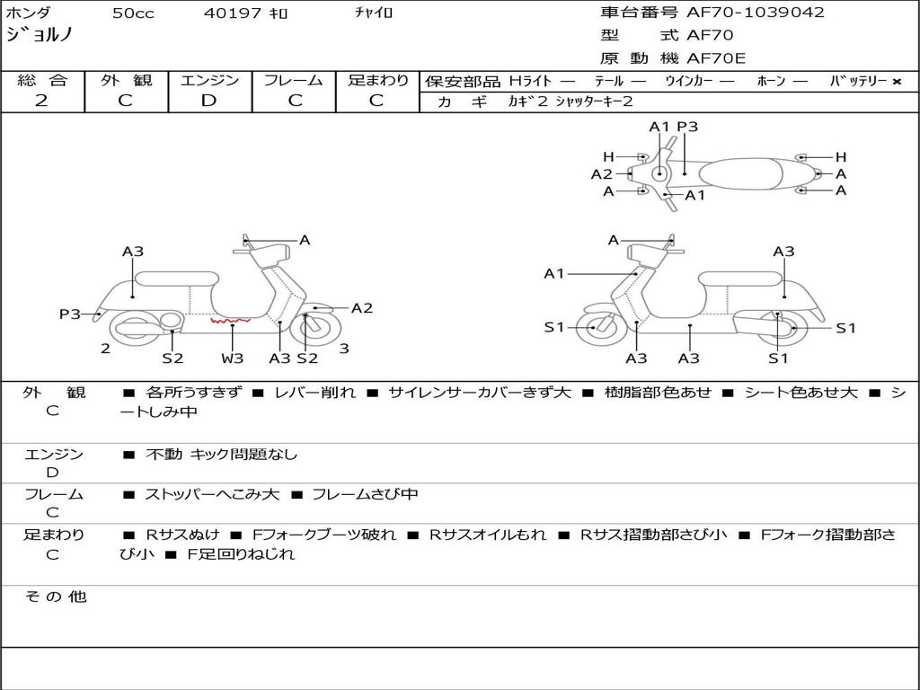 | Номер рамы / VIN | AF70-1039042 |