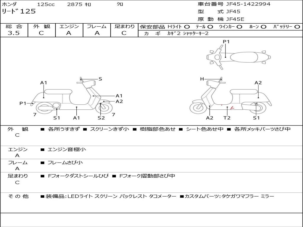 | Номер рамы / VIN | JF45-1422994 |
