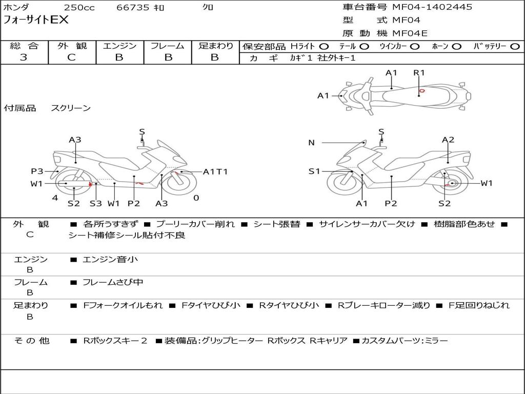 | Номер рамы / VIN | MF04-1402445 |