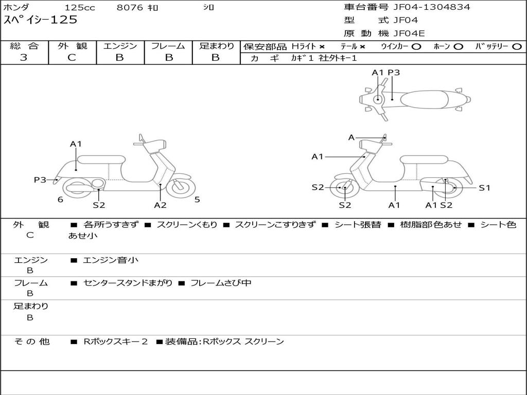 | Номер рамы / VIN | JF04-1304834 |