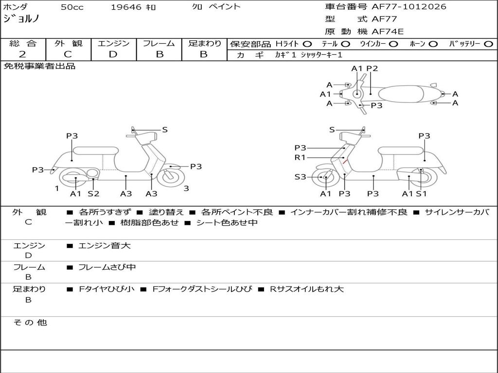 | Номер рамы / VIN | AF77-1012026 |