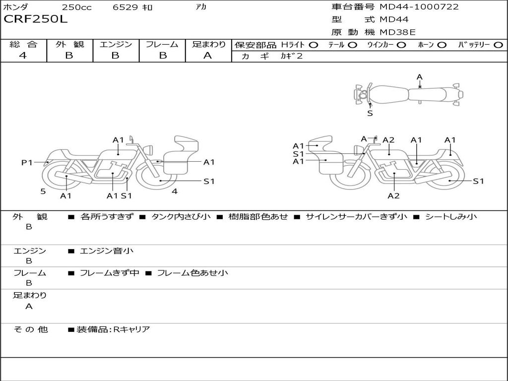 | Номер рамы / VIN | MD44-1000722 |