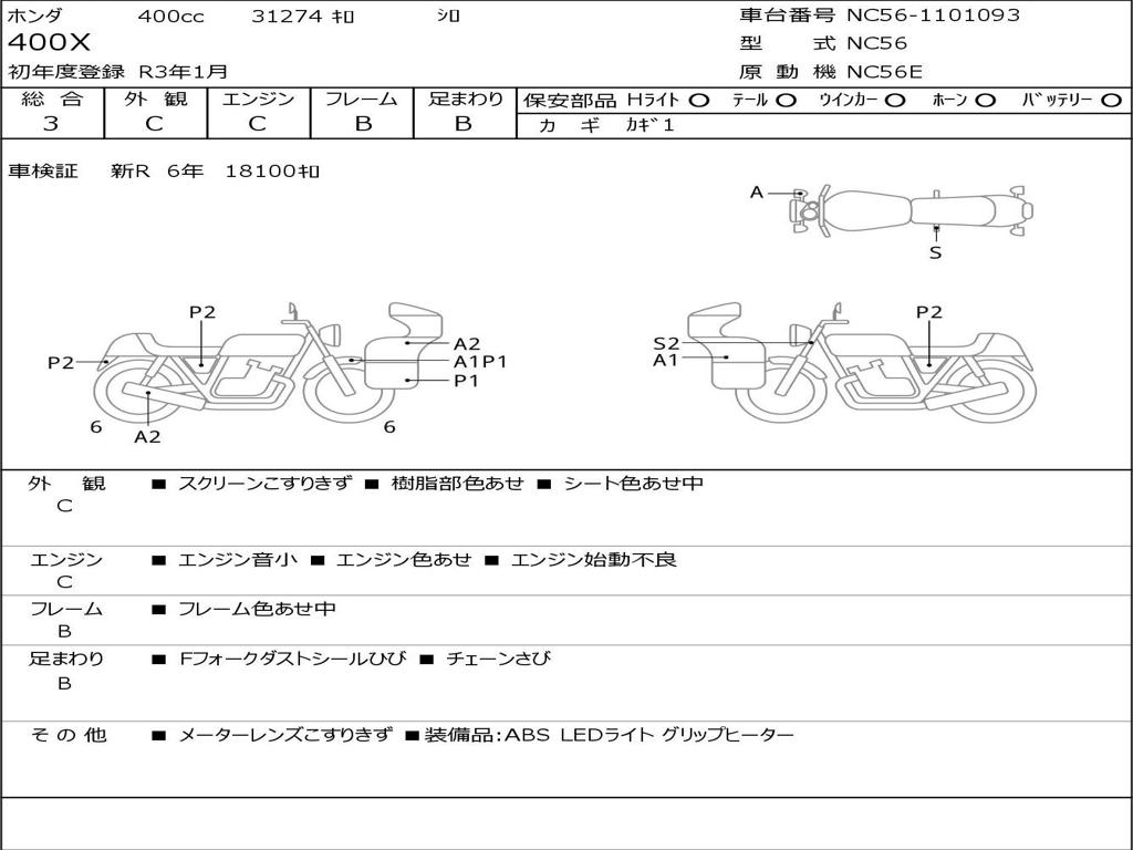 | Номер рамы / VIN | NC56-1101093 |