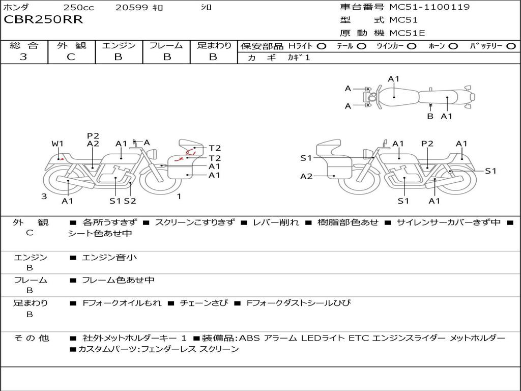 | Номер рамы / VIN | MC51-1100119 |