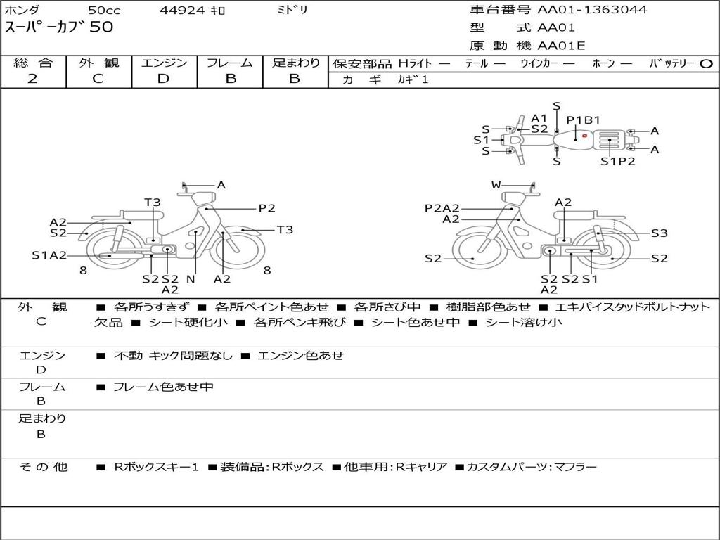 | Номер рамы / VIN | AA01-1363044 |