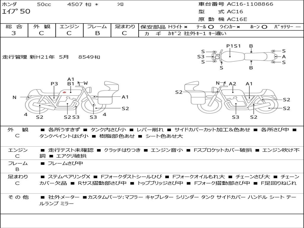 | Номер рамы / VIN | AC16-1108866 |