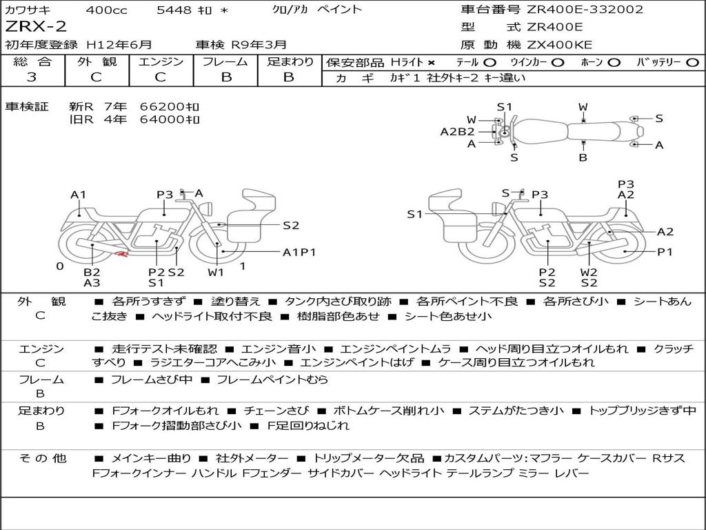 | Номер рамы / VIN | ZR400E-332002 |