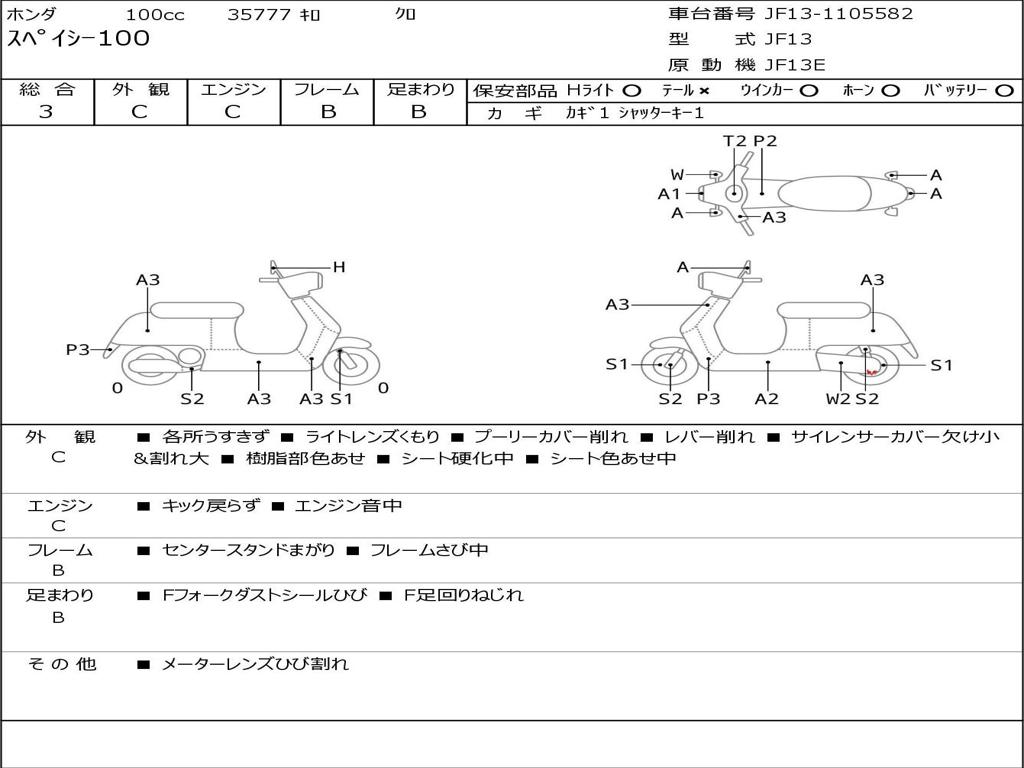 | Номер рамы / VIN | JF13-1105582 |