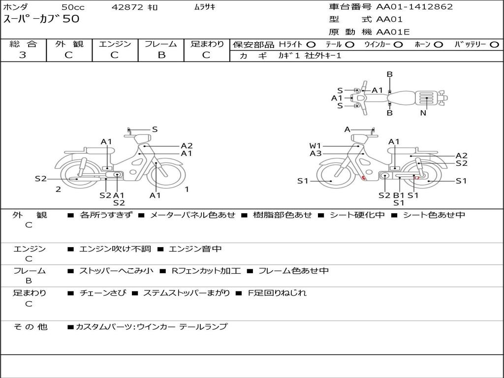 | Номер рамы / VIN | AA01-1412862 |