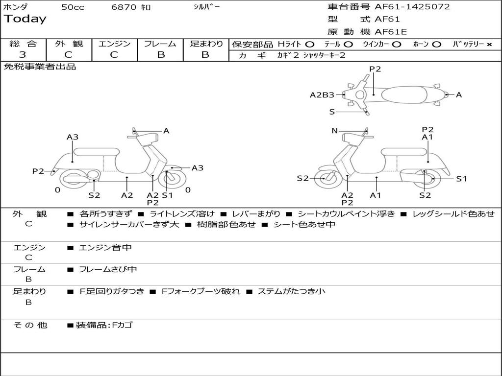 | Номер рамы / VIN | AF61-1425072 |