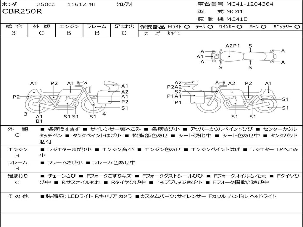| Номер рамы / VIN | MC41-1204364 |