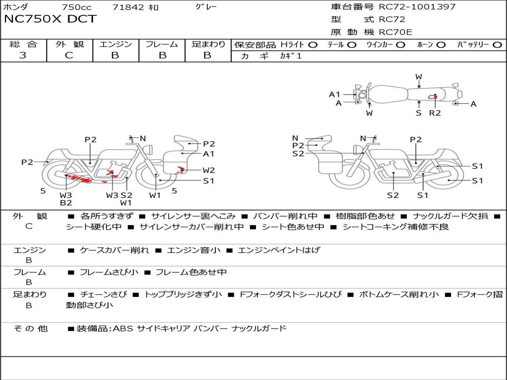 | Номер рамы / VIN | RC72-1001397 |