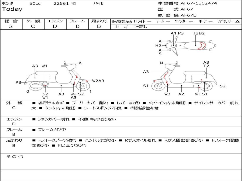 | Номер рамы / VIN | AF67-1302474 |