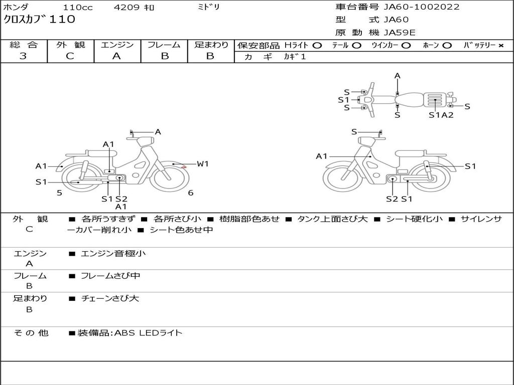 | Номер рамы / VIN | JA60-1002022 |