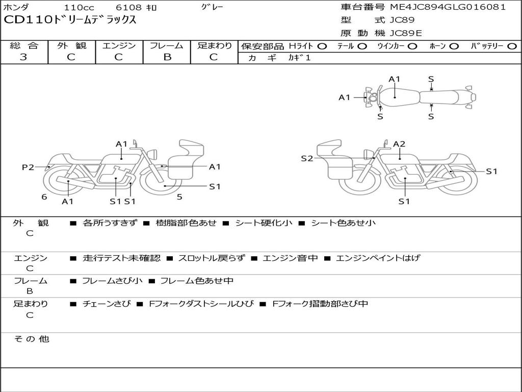 | Номер рамы / VIN | ME4JC894GLG016081 |